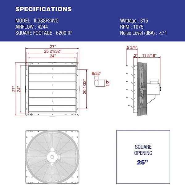 4244 CFM Silver Electric Powered Gable Mount Shutter Fan/Vent