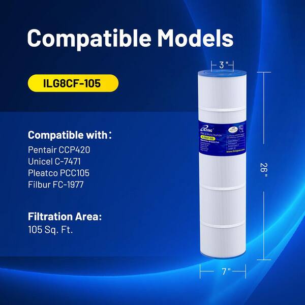 ILG8CF-105 Pool and Spa Replacement Filter Cartridge, Compatible with Pentair, Ultral, Unicel, Filbur, Pleatco, 4-Pack