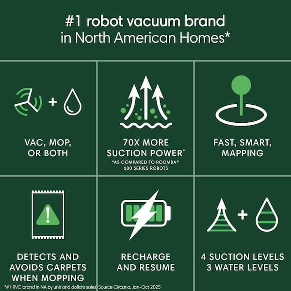Roomba 105 Combo 13.2 in. Robotic Vacuum and Mop with Smart Navigation in Black
