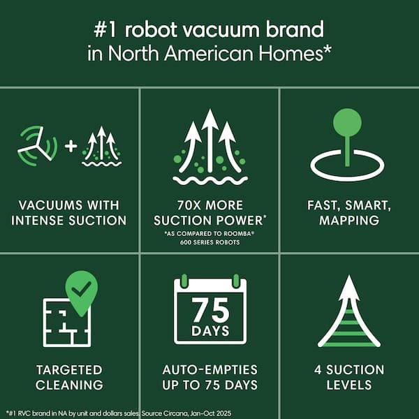 Roomba 105 Vac 13.2 in. Robotic Vacuum with Smart Navigation Path + AutoEmpty Dock in Black
