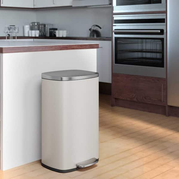 13.2 Gal. / 50 Liter Ivory White SoftStep Rectangular Household Metal Trash Can with Odor Filter
