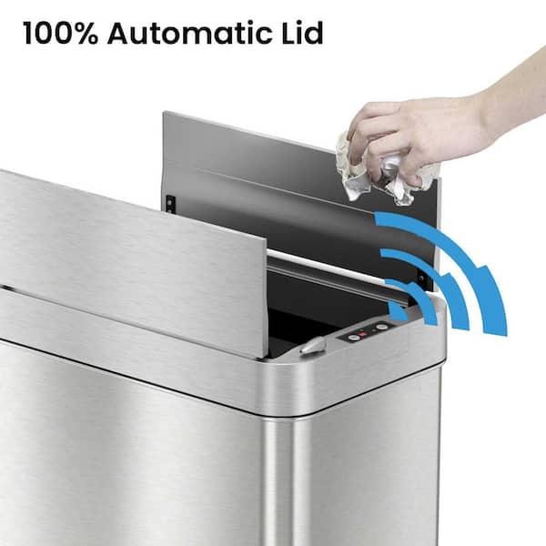 13 Gal. / 49 Liter Stainless Steel Wings Sensor Lid Household Metal Trash Can with Odor Filter