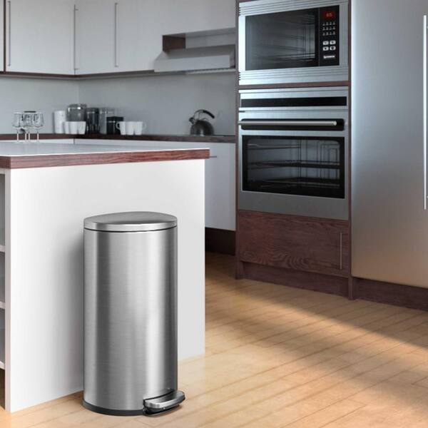 8 Gal. / 30 Liter Stainless Steel SoftStep Semi-Round Household Metal Trash Can with Odor Filter