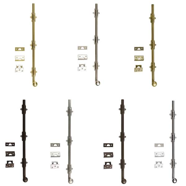 18 in. Heavy-Duty Solid Brass Bright Nickel Surface Bolt with Round Knob