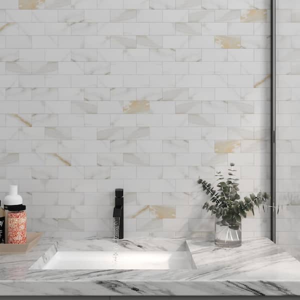 11.6 in. x 11.3 in. Peel and Stick Wall Tile for Backsplash PVC Wall Tile Self Adhesive Tile, White Marble (10-Pack)