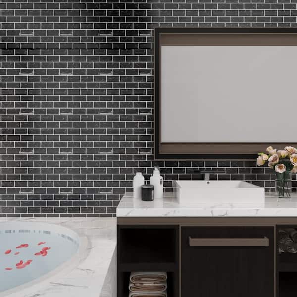 12 in. x 12 in. Backsplash Tile for Kitchen Vinyl Peel and Stick Self Adhesive Stick on Subway Tiles in Black (10-Tiles)