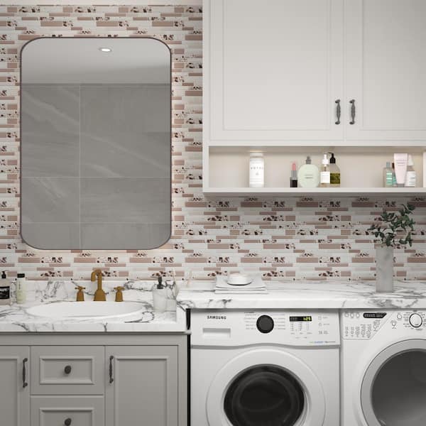 12 in. x 12 in. Peel and Stick Vinyl Backsplash Marble Look Self Adhesive Wall Tile for Kitchen in Dark Pink(10-Pack)