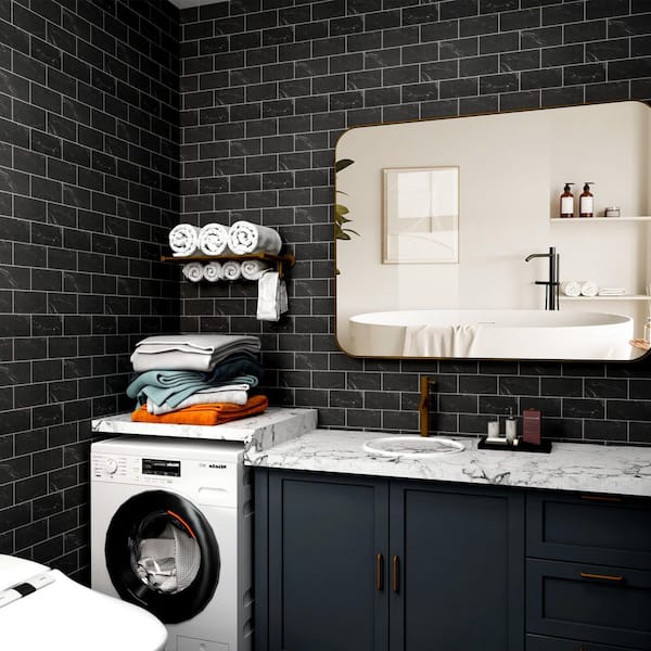 12 in. x 12 in. Vinyl Peel and Stick Tile Stickers Self Adhesive Backsplash Tile for Decor, Black (10-Pack, 10 sq. ft. )