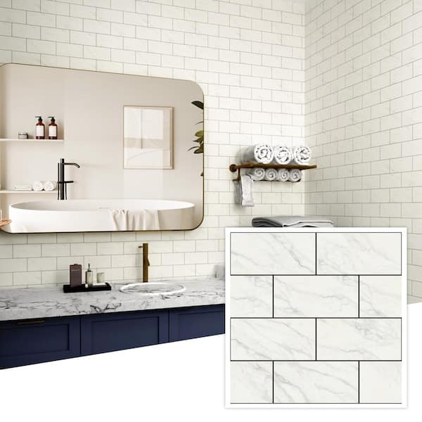12 in. x 12 in. Vinyl Peel and Stick Tile Stickers Self Adhesive Backsplash Tile for Decor, White (30-Pack, 30 sq. ft. )