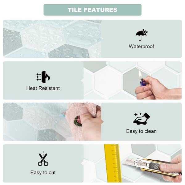 • Hexagon tiles are water-resistant, oil-proof, heat-resistant