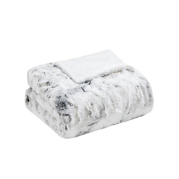 Oversized 60 in. x 70 in. Light Grey Throw Blanket Comfortable Faux Fur Machine Washable Soft Throw