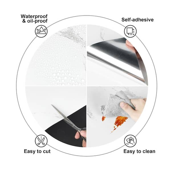 Peel, Stick Wallpaper Self Adhesive Decorative Contact Paper for Wall Kitchen Decor (White Marble, 15.7 in. x 196.8 in.)
