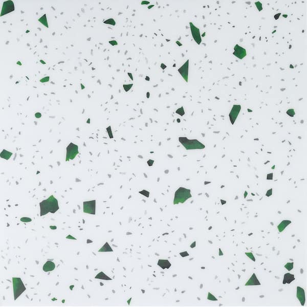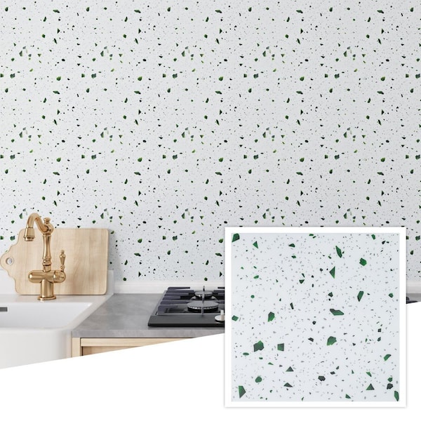 Peel and Stick Backsplash 11.8" x 11.8" Self-Adhesive Vinyl Tiles for Kitchen, White and Green, Covers 9.6 Sq. Ft.