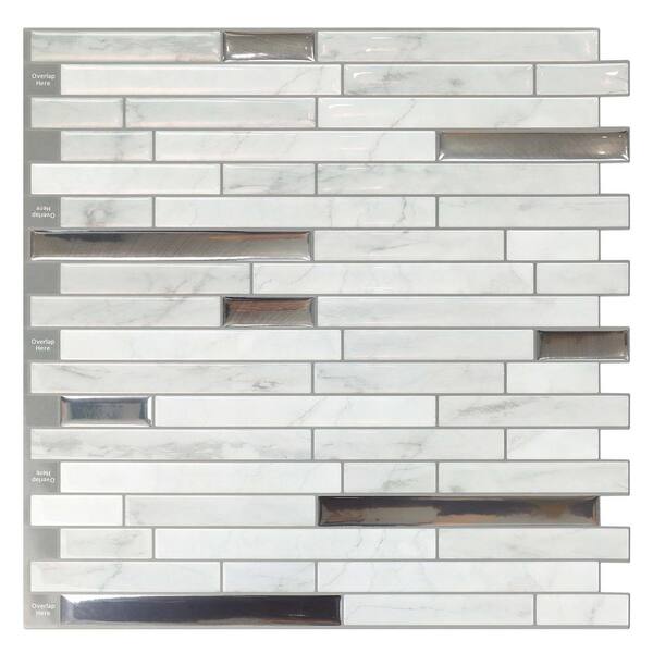 Silver Vinyl Peel and Stick Tile Backsplash 12 in. x 12 in. Stick on Tiles Backsplash (10-Pack 10 sq. ft. / Case)