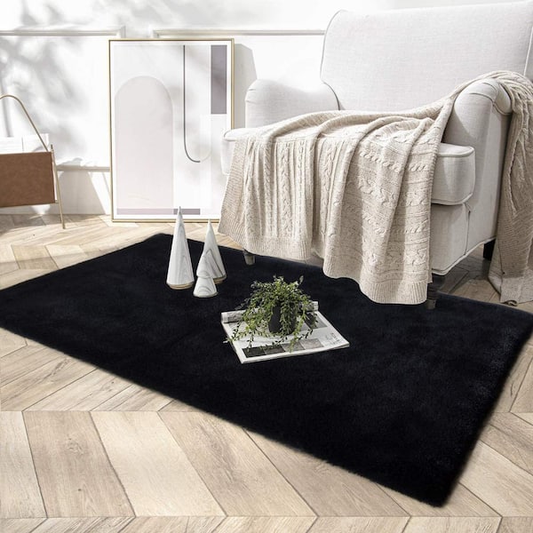 Mmlior Black 3 ft. x 5 ft. Soft Faux Rabbit Fur Area Rug
