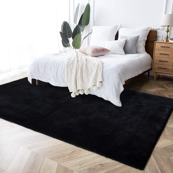 Mmlior Black 5 ft. x 8 ft. Soft Faux Rabbit Fur Area Rug