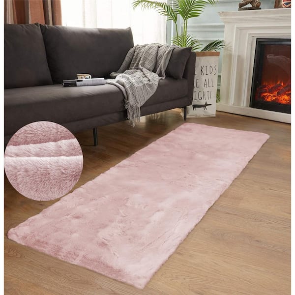 Mmlior Faux Rabbit Fur Pink 2 ft. x 6 ft. Fluffy Cozy Furry Area Rug Runner Rug