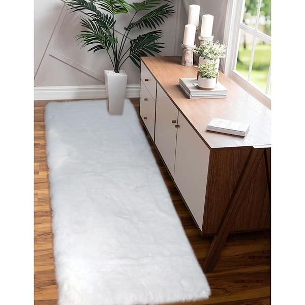 Mmlior Faux Rabbit Fur White 2 ft. x 10 ft. Fuzzy Furry Area Rug Runner Rug