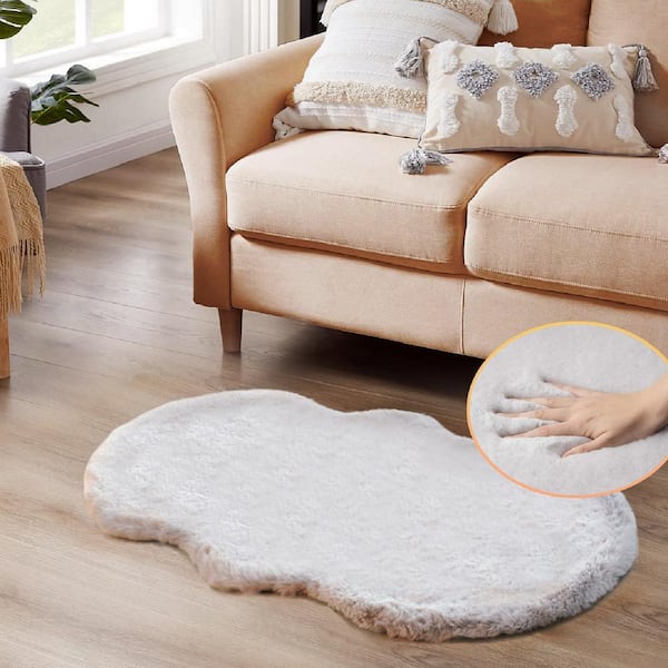 Mmlior Light Gray 2 ft. x 4 ft. Soft Faux Rabbit Fur Specialty Area Rug