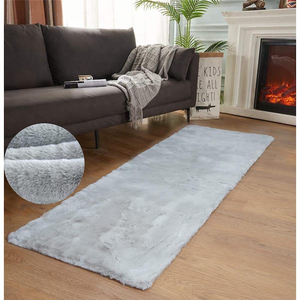 Mmlior Light Gray 2 ft. x 6 ft. Soft Faux Rabbit Fur Runner Rug
