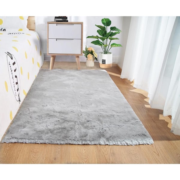 Mmlior Light Gray 3 ft. x 5 ft. Soft Faux Rabbit Fur Area Rug