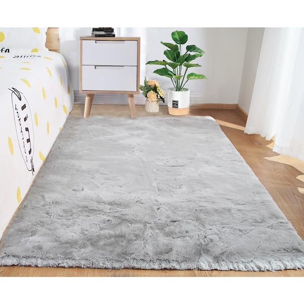 Mmlior Light Gray 4 ft. x 6 ft. Soft Faux Rabbit Fur Area Rug