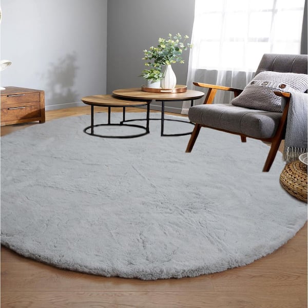 Mmlior Light Gray 8 ft. x 8 ft. Soft Faux Rabbit Fur Round Area Rug