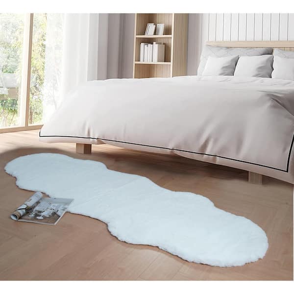 Mmlior White 2 ft. x 6 ft. Soft Faux Rabbit Fur Specialty Area Rug