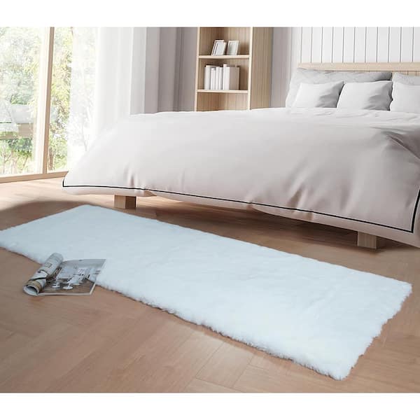 Mmlior White 2 ft. x 8 ft. Cozy Fluffy Furry Faux Rabbit Fur Area Rug Runner Rug