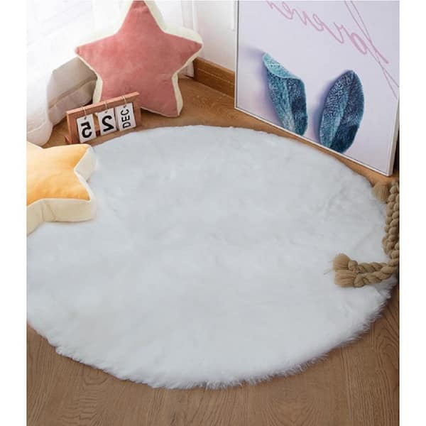 Mmlior White 3 ft. x 3 ft. Soft Faux Rabbit Fur Round Area Rug