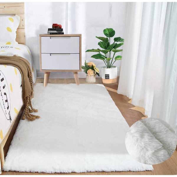 Mmlior White 3 ft. x 5 ft. Soft Faux Rabbit Fur Area Rug