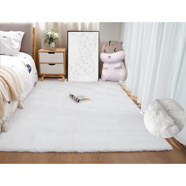 Mmlior White 5 ft. x 8 ft. Soft Faux Rabbit Fur Area Rug