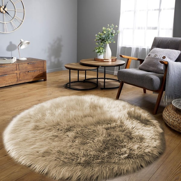 Sheepskin Faux Fur Beige 4 ft. x 4 ft. Cozy Rugs Round Area Rug