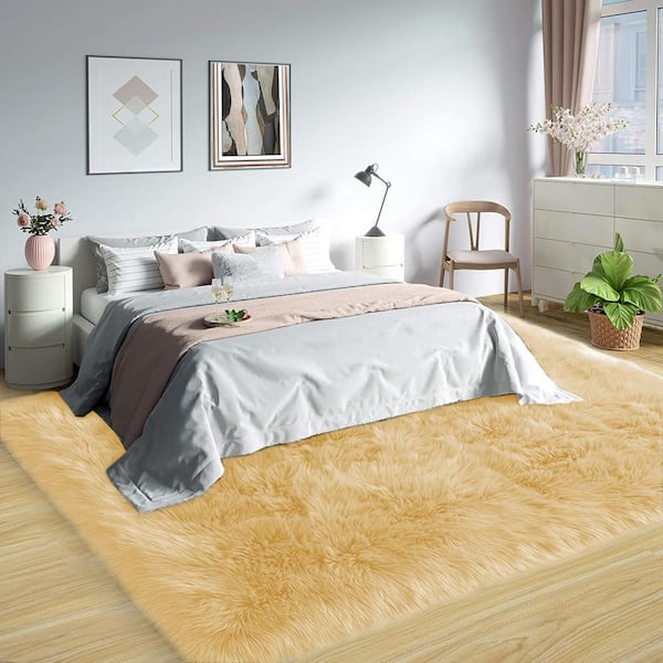 Sheepskin Faux Furry Pale Yellow Cozy Rugs 8 ft. x 10 ft. Area Rug