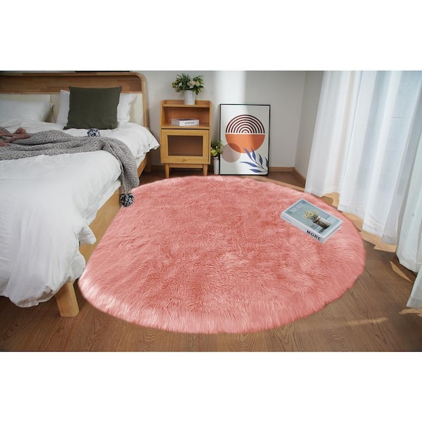 Sheepskin Faux Furry Pink Cozy Rugs 5 ft. x 5 ft. Round Area Rug
