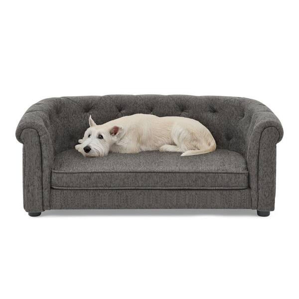 Large Dark Gray Pet Beds with Arc-Shaped Backrest and Armrests, Breathable Linen Contemporary Rectangular Pet Sofa