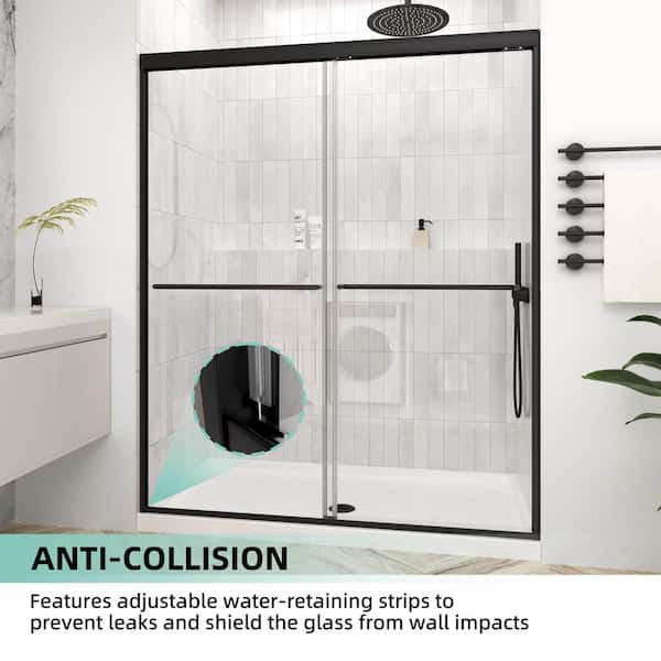 56-60 in. W x 70 in. H Sliding Framed Shower Door in Matte Black with 1/4 in. (6 mm) Tempered Clear Glass