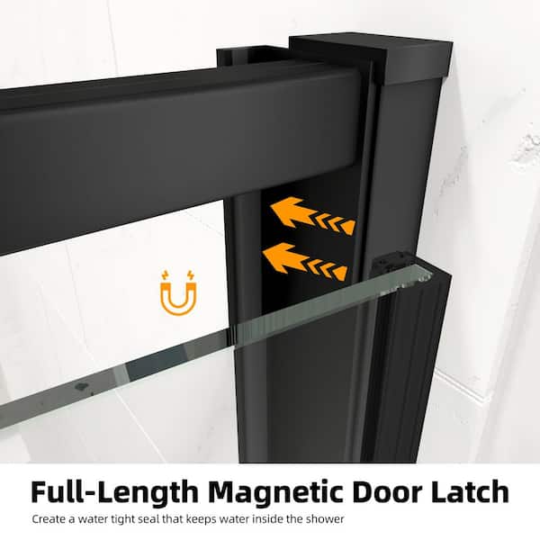 Modern 48 in. W x 71 in. H Pivot Swing Semi-Frameless Shower Door in Matte Black Finish with 1/4 in. (6mm) Clear Glass