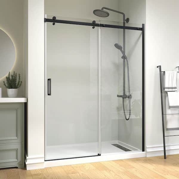 Modern 54 in. W x 74 in. H Single Sliding Frameless Shower Door in Matte Black Finish with 5/16 in. (8mm) Clear Glass