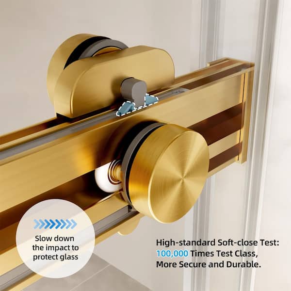 Modern 60 in. W x 74 in. H Double Sliding Frameless Shower Door in Brushed Gold Finish with 5/16 in. (8mm) Clear Glass