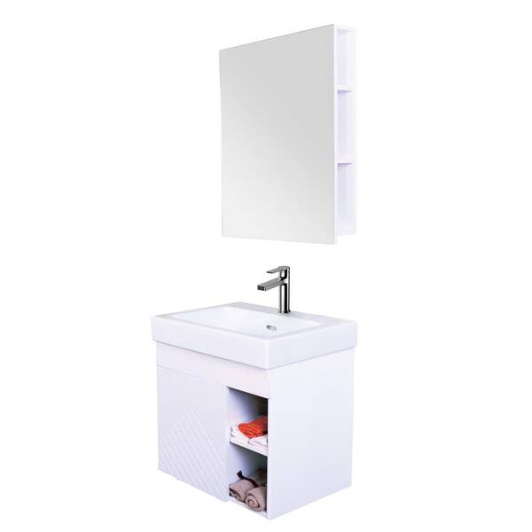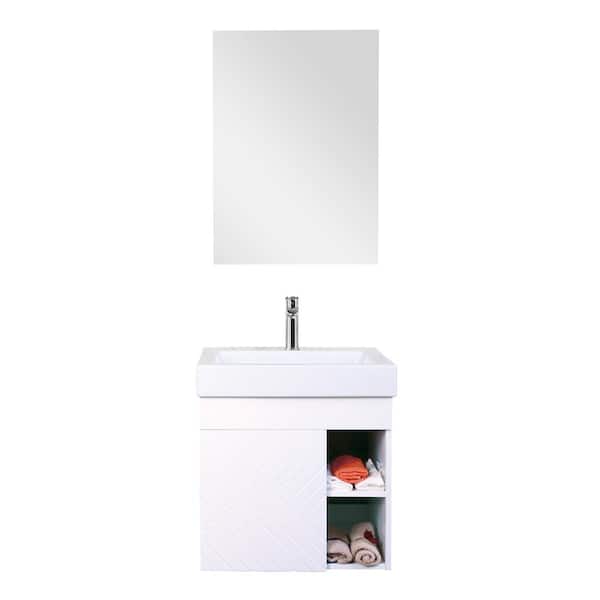 22 in. Bath Vanity in Matte White with Ceramic Vanity Top in White with White Basin and Mirror