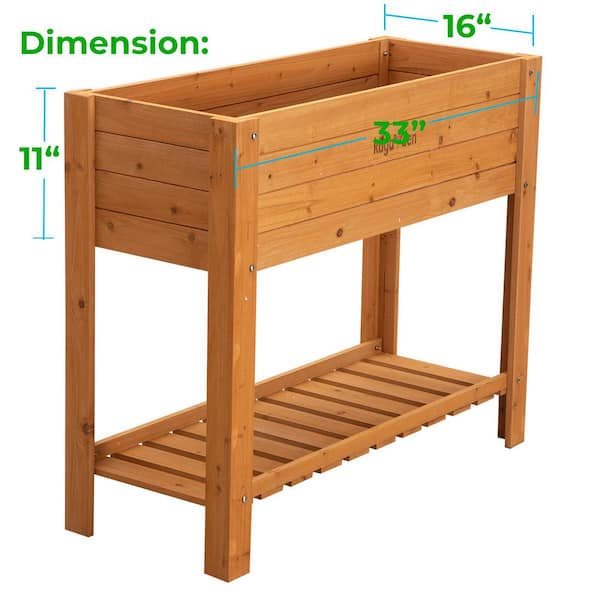 39 in. x 16 in. x 33 in. H Elevated Cedar Wood Raised Garden Bed with Shelf Outdoor Wooden Planter Box