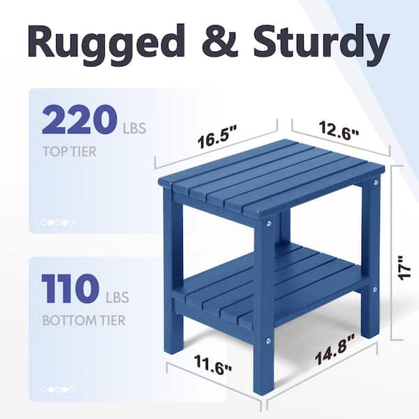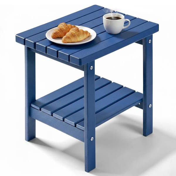 17 in. Navy Rectangular Patio Outdoor Side Table With Storage