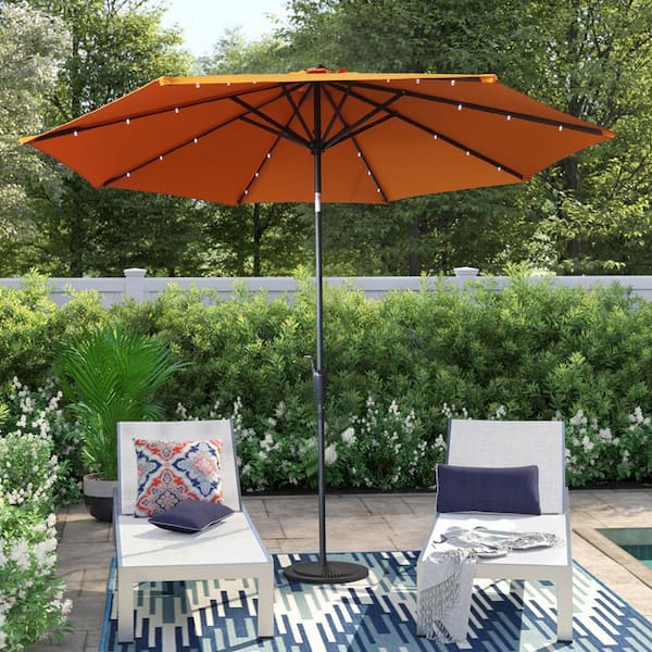 10 ft. Octagon Aluminum Patio Market Umbrella with LED Lights and Push Button Tilt in Orange