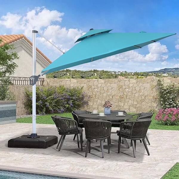 10 ft. Square Aluminum 360° Cantilever Patio Umbrella with Umbrella Cover in Turquoise
