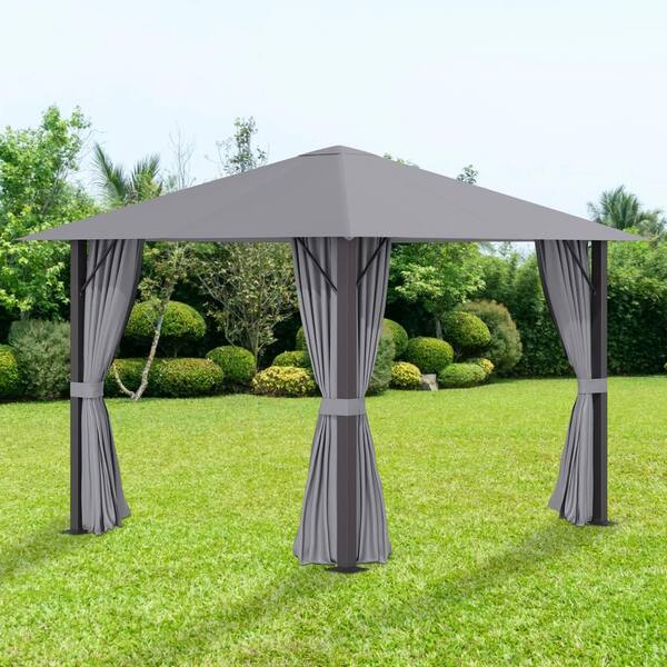 10 ft. x 10 ft. Gray Patio Gazebo Aluminum Frame Outdoor Canopy Shelter with Sidewalls Vented Roof