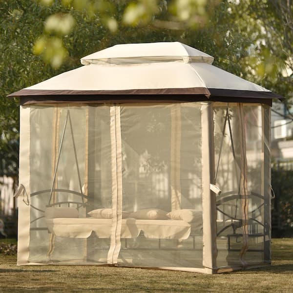106.3 in. Seating Capacity 3-People Black Metal Patio Swing with Mosquito Netting