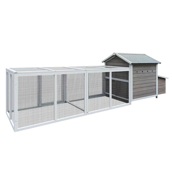 118 in. Wooden Chicken Coop Outdoor Hen House Poultry Cage with Free-Range Doors, Nesting Box, Leakproof Pull-on Tray