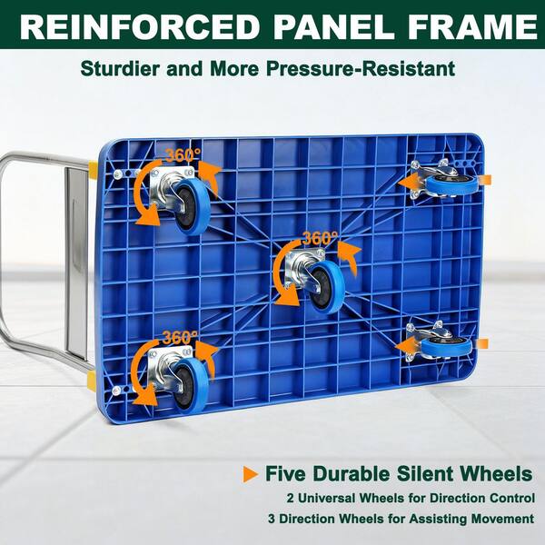 1320 lbs. Capacity Platform Truck Foldable Push Hand Cart with 360-Degree Swivel Wheels in Blue