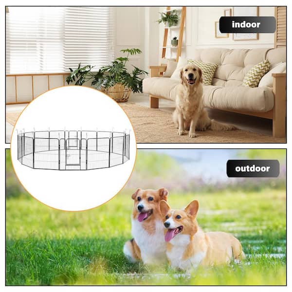16-Panels Large Outdoor Indoor Iron Puppy Dog Fence Pet Dog Playpen
